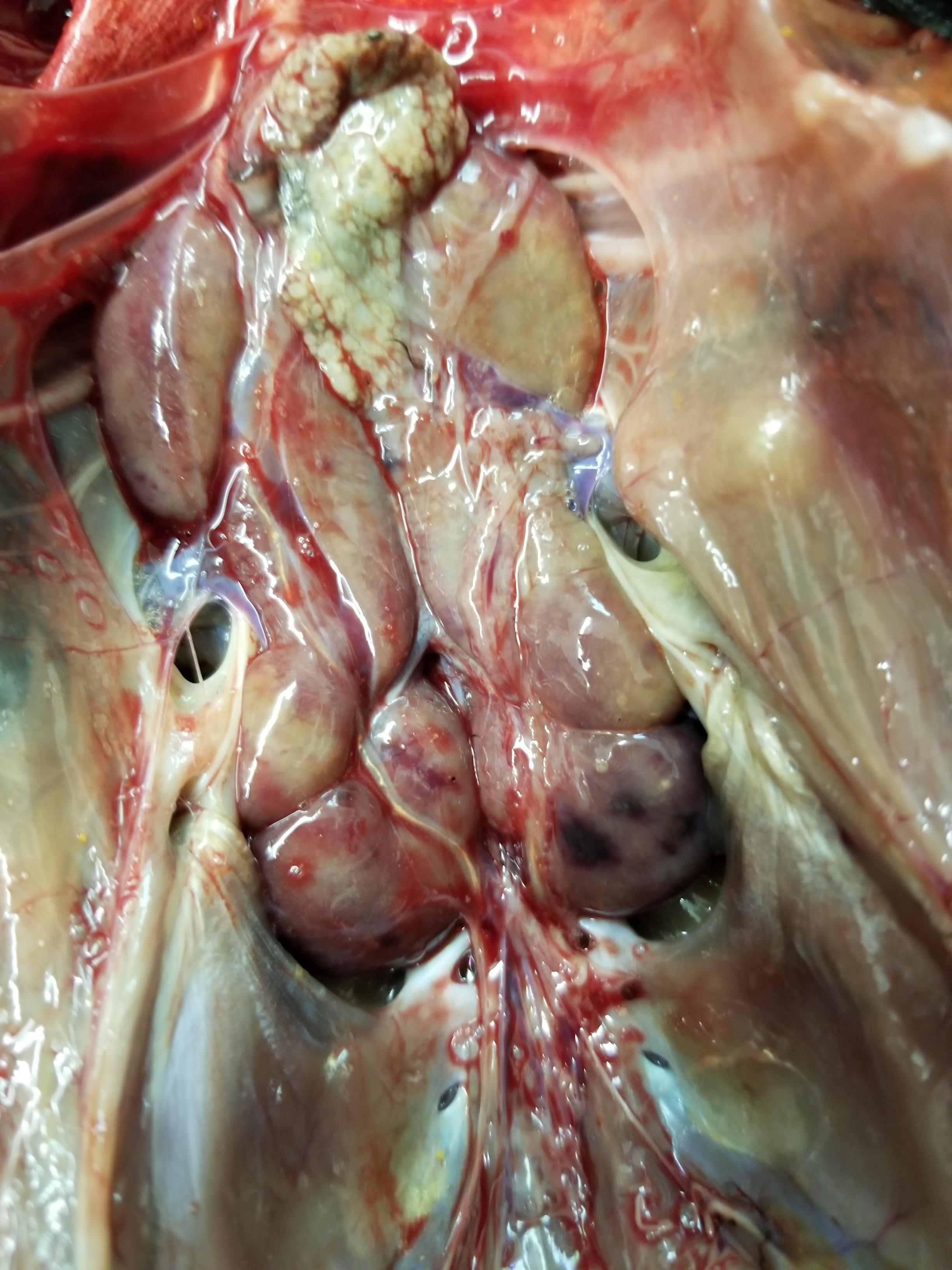 I recently got together with Dr Vicki Bowes, avian vet/pathologist to look at a number of ‘unsolved mysteries’ that I have collected. She diagnosed the first, then the second, case with Marek’s Disease and joked that it was going to be a day for Marek’s Disease. She wasn’t far wrong. We sifted through 42 cases and five of the six that included necropsy photos were Marek’s, or possibly Leukosis. There were some telltale signs of one or the other, but the definitive diagnosis usually requires an in-person exam and often microscopic lab work.