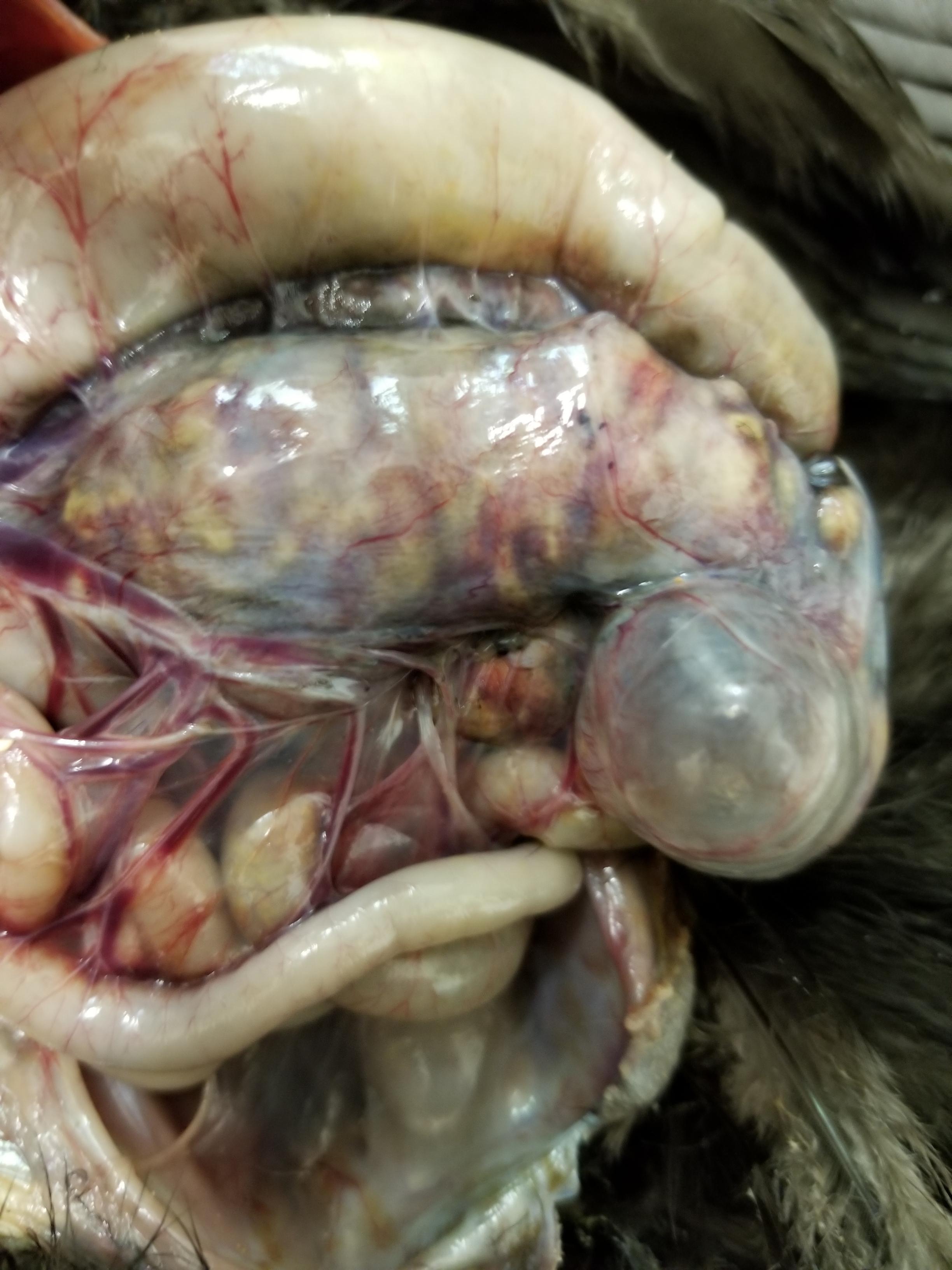 - The tubular organ, either the oviduct or the intestine, is infected consistent with Marek’s.