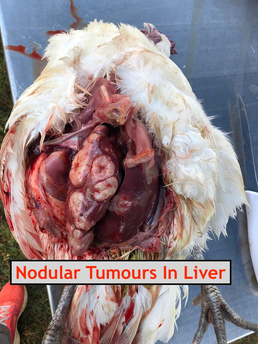 “I had a chicken that displayed the typical symptoms of being egg bound. I decided to dissect and investigate. She wasn’t egg bound but the entire abdomen was tigh and filled with an enlarged liver. I am sure it was pressing on her lungs which caused laboured breathing.” – Ging Ging Points