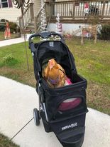 “Butterscotch, our beloved Ameraucana, who just passed in May at 11 years old. She was carried around by all four of my children, pulled in a wagon and would swing with one of my daughters. As she aged, she went blind so we converted a large rabbit hutch into her a retirement coop and gave her our old Roo, Frankie, to be her seeing-eye chicken. When the temperatures were extreme in winter, we brought them both in the house at night. I wish I had taken more pics of her. Her nickname was Granny Scotch because she was one of our original chickens and outlived so many. She was the best.” – Stacey Caswell Bruneaux