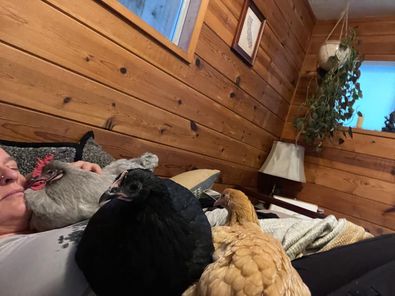 I spend a lot of time with my birds, but always on their turf so I have no photos depicting their place in my home, as well as my heart. Never fear, when I need help I just call on my Bitchin’ Chicken followers and they shower me with evidence that their chickens truly are part of their families.