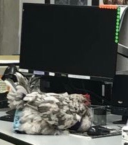 “Blue greeting people at the specimen drop off window where I work in the Clinical Pathology Department at the Colorado State University Veterinary Teaching Hospital (VTH).” – Seleta Nothnagel