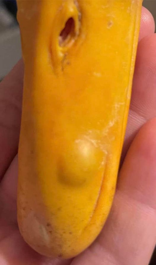 Dr Bowes: No that’s not a cuterebra larva. It’s caseous debris from what I suspect was a puncture, bite or penetrating injury (not pecking). It appears totally encapsulated which means it was at the resolutions stage (i.e. wouldn’t get bigger). That you were able to remove it without it bleeding was amazing.