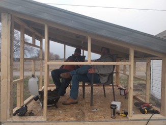 Then we began the construction of the coop from plans that were only in my head, and then transferred to a horrible drawing on paper. Other than the wire, the cheap and ugly roll of linoleum flooring, the hardware for doors and windows, and the legs to raise it off the ground the coop was nearly free. Well, it did cost us blood, sweat, tears and cusswords. All total, maybe $100.