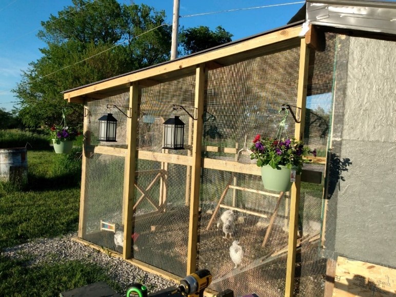 We are generally a ‘planning’ family. When we do things, we do them BIG, but soon after the decision was made to get chickens in the spring avian flu hit the news. We have always purchased from the same hatchery in Northern Iowa, and intended to keep with that tradition this past spring. However, word started traveling that our state vet could halt the sale of chicks. So, in true grandmother form, I hopped in my car and drove 3½ hours to secure our flock of one-day-old chicks two months before we had planned to get them. This meant the coop wasn’t done; we were still having very cold weather, including several snowstorms.