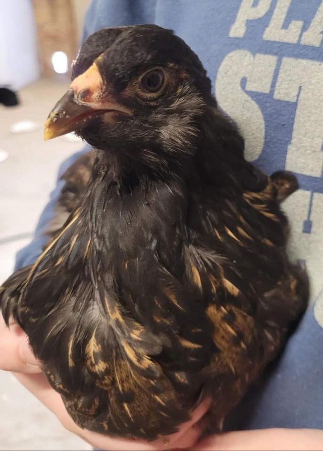 He swung the shed door open to expose a happy red Silkie rooster, two puffy-cheeked 14 week old EE pullets and my fat deceit.