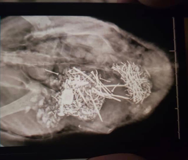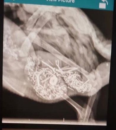 Dr Bowes: This is a case of pica which has several implications: punctures from the sharp nails and screws, and zinc or lead poisoning from the metals. It’s great that the owner had an x-ray done to determine what was going on, but this issue won’t be remedied without surgical intervention. I would be curious what the environment was like that the duck had access to that many metal objects, why it was attracted to eating them and what were its symptoms that required a visit to the vet?