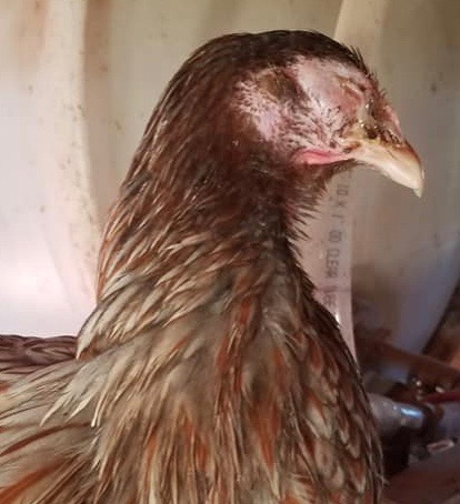 Dr Bowes: This in an injury to the blood supply with devitalization to the area around both the top and bottom of her beak. The white colouration around the face and comb look like Favus, a fungal infection. Antiseptic and cleaning solutions could be applied but I think they would be insufficient. A vet could culture it and if it was fungal then topical medications could be prescribed. I would like to know if she was behaving normally and if any other birds had similar symptoms. The integrity of her beak has been affected. I suspect this is a case calling for humane euthanasia.