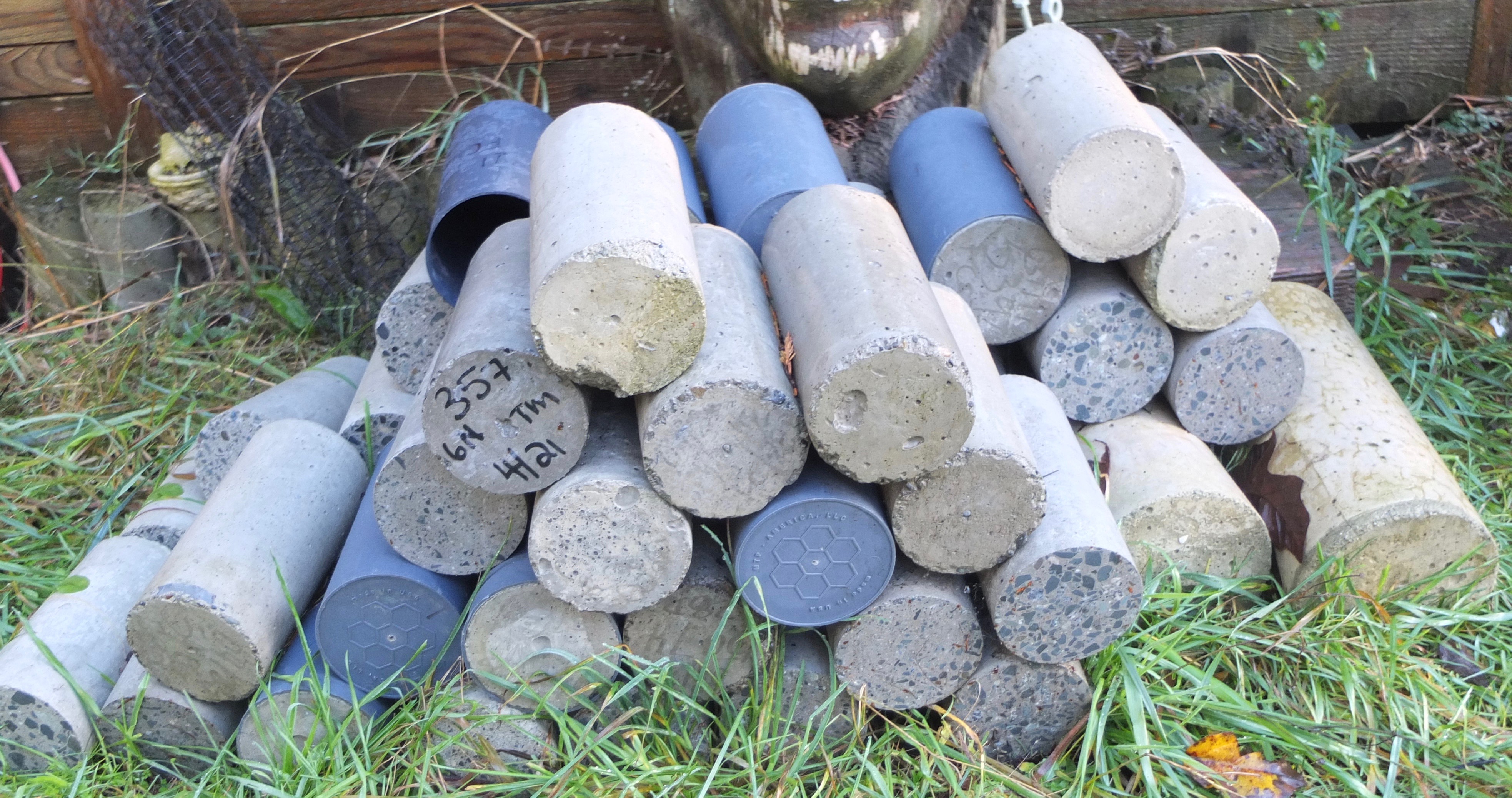 - 34 concrete core sample cylinders (edging around chicken pen)