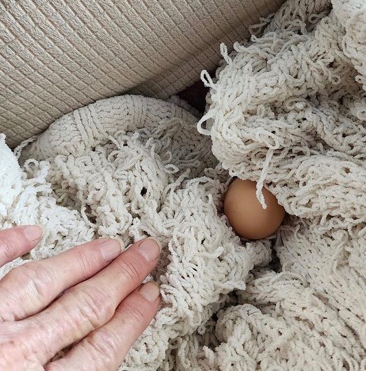 This is one of mine: not just laid in an odd place, but also a weird egg. It’s a form of soft-shelled egg, called a tubular egg.
