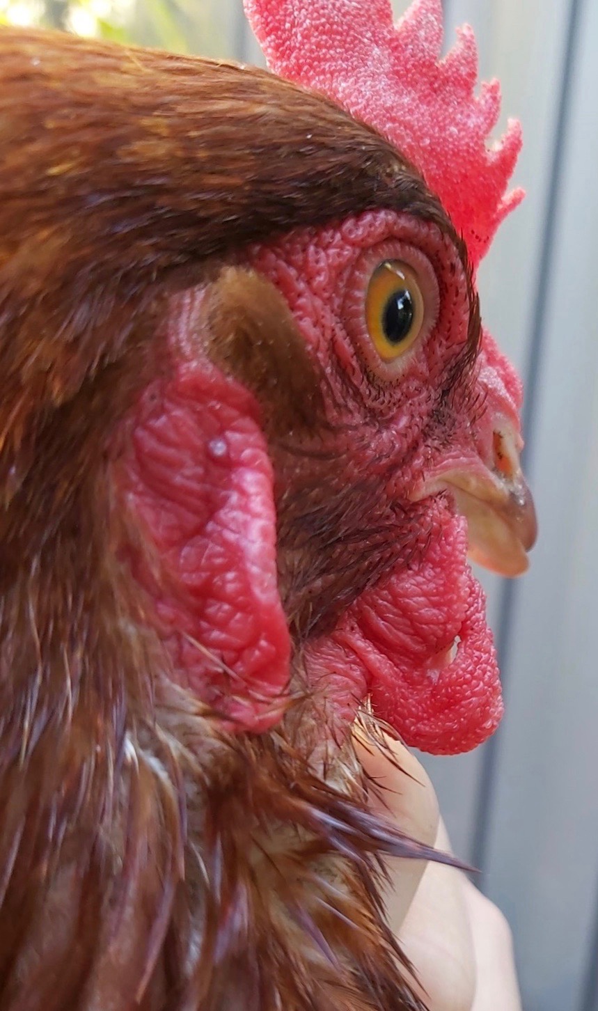 Bitchin’ Chickens: You’re all probably familiar with bumblefoot, but what about bumble wattle? There’s no such term, just something I coined since it seemed to fit the bill so well. Bumblefoot is a bacterial infection usually caused by Staphylococcus, but sometimes Streptococcus or E.coli. Here’s an example of a bacterial infection in another part of the body. This hen had that lesion for weeks. The owners tried topical treatments and squeezing it, to no avail. They took a scalpel and cut around the margins and the lump came out in one piece. It’s hard to see from the photos but it has left a hole right through her wattle. (Photo credit: Reid Chester)