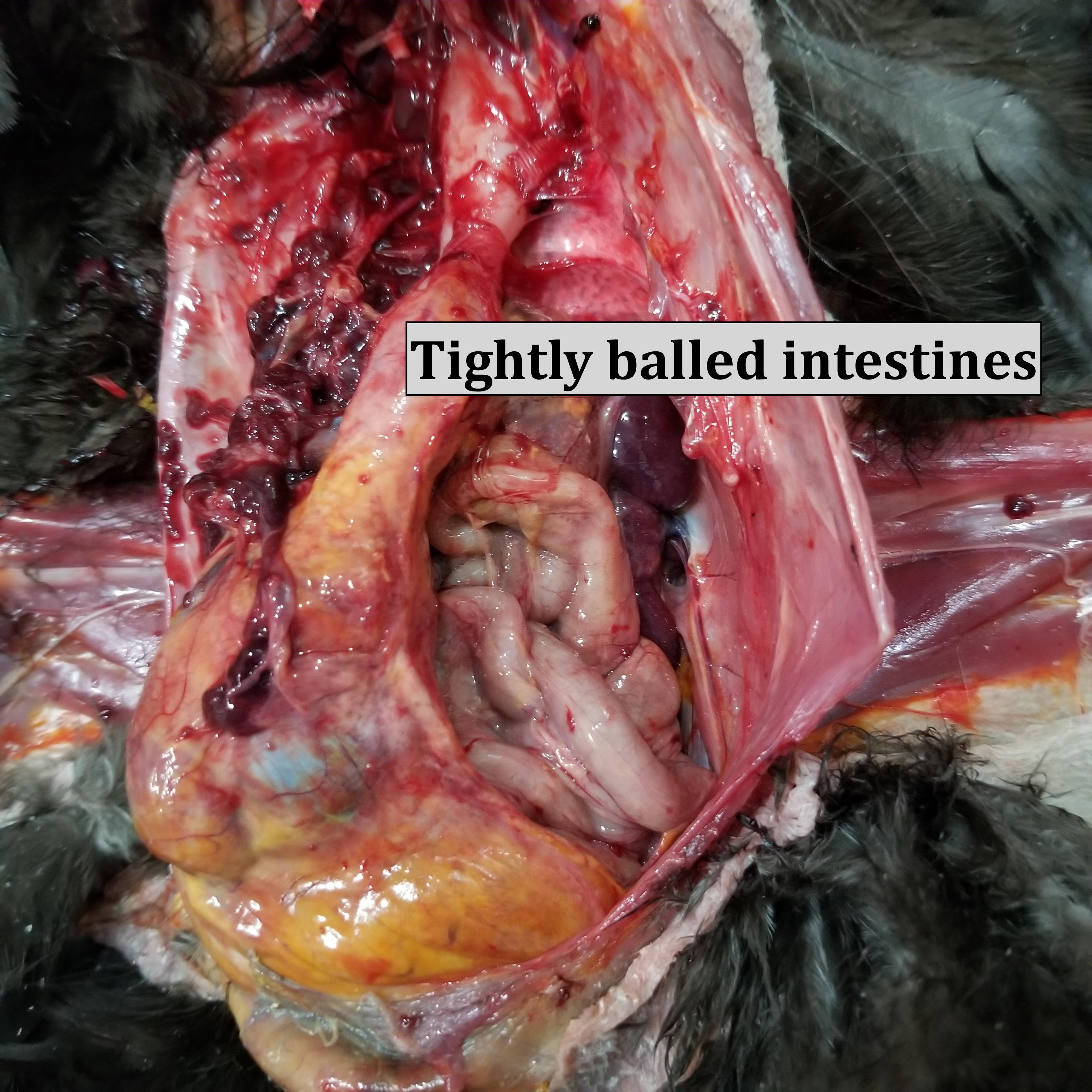 I didn’t see any blockages in her intestines but they didn’t look healthy. I did check her vent prior to death, which felt tight. About 3/4” in it was like a rubber band around my finger, which seemed odd.