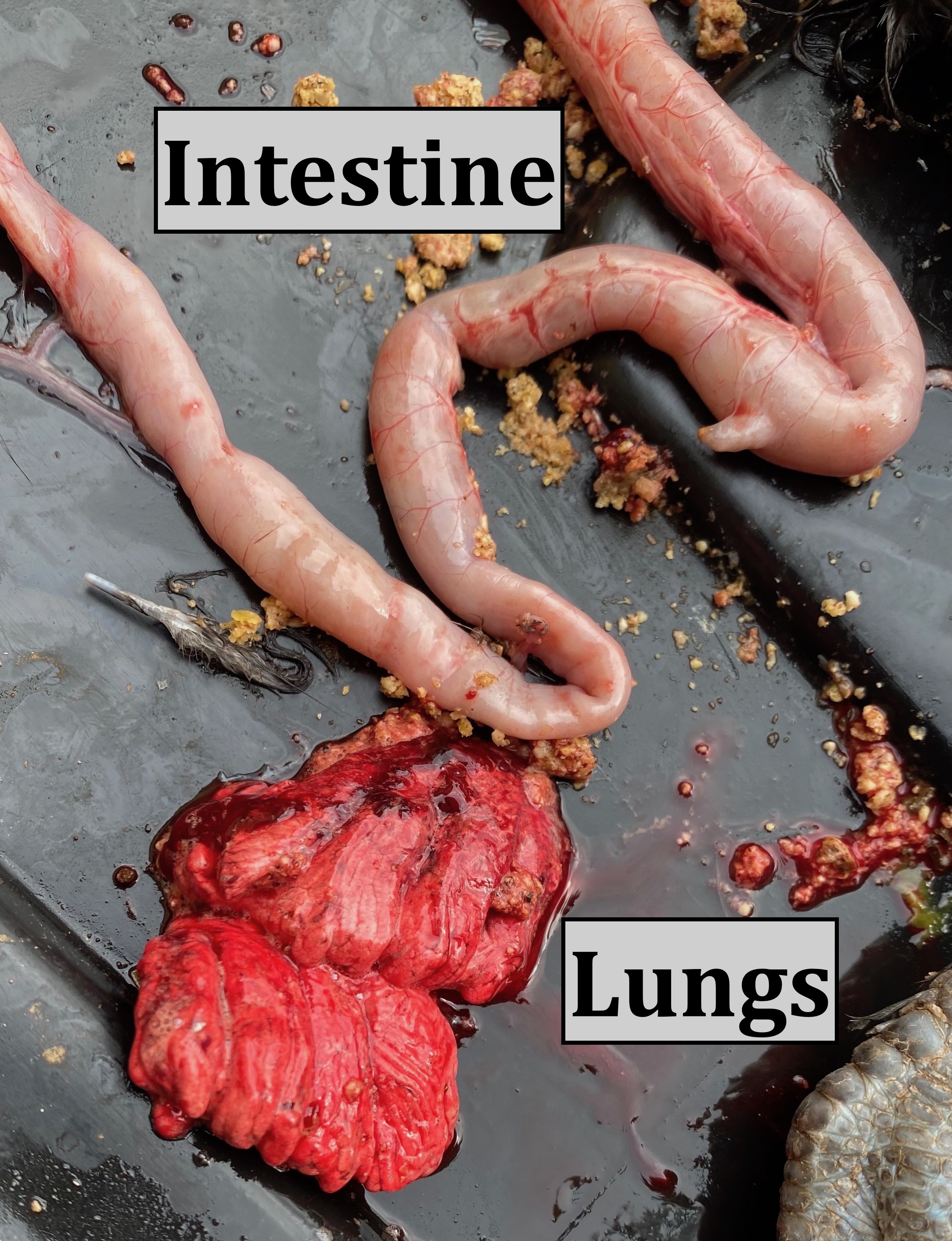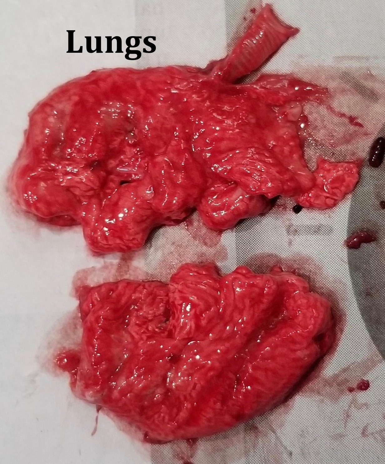 - It was hard to find her lungs. I might have damaged them doing the necropsy, but they appeared bloody and fragile.
