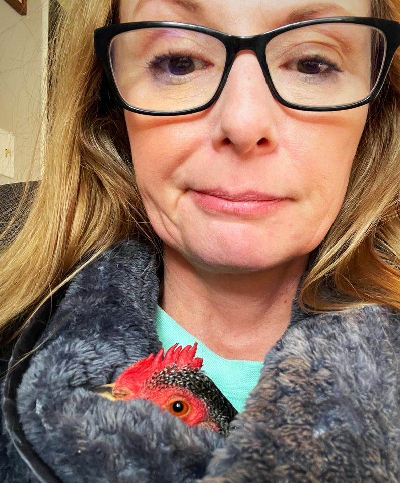 The hen wasn’t even missing a feather. Bella reported that she was sitting at the back door waiting. Nunkie kept her tiny head right on Bella’s neck as she held onto her, crying tears of thankfulness.