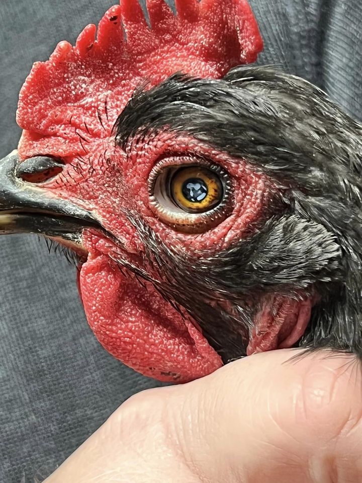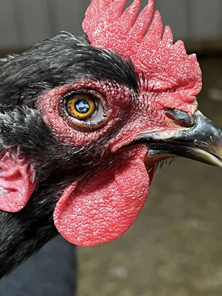 We have a Gold Laced Wyandotte whose pupils used to appear normal, but then became so miniscule that they appeared nonexistent and won’t dilate. Check out these irises. Have you seen anything like it or know what may be causing them to look like this? – Jael Range Angels