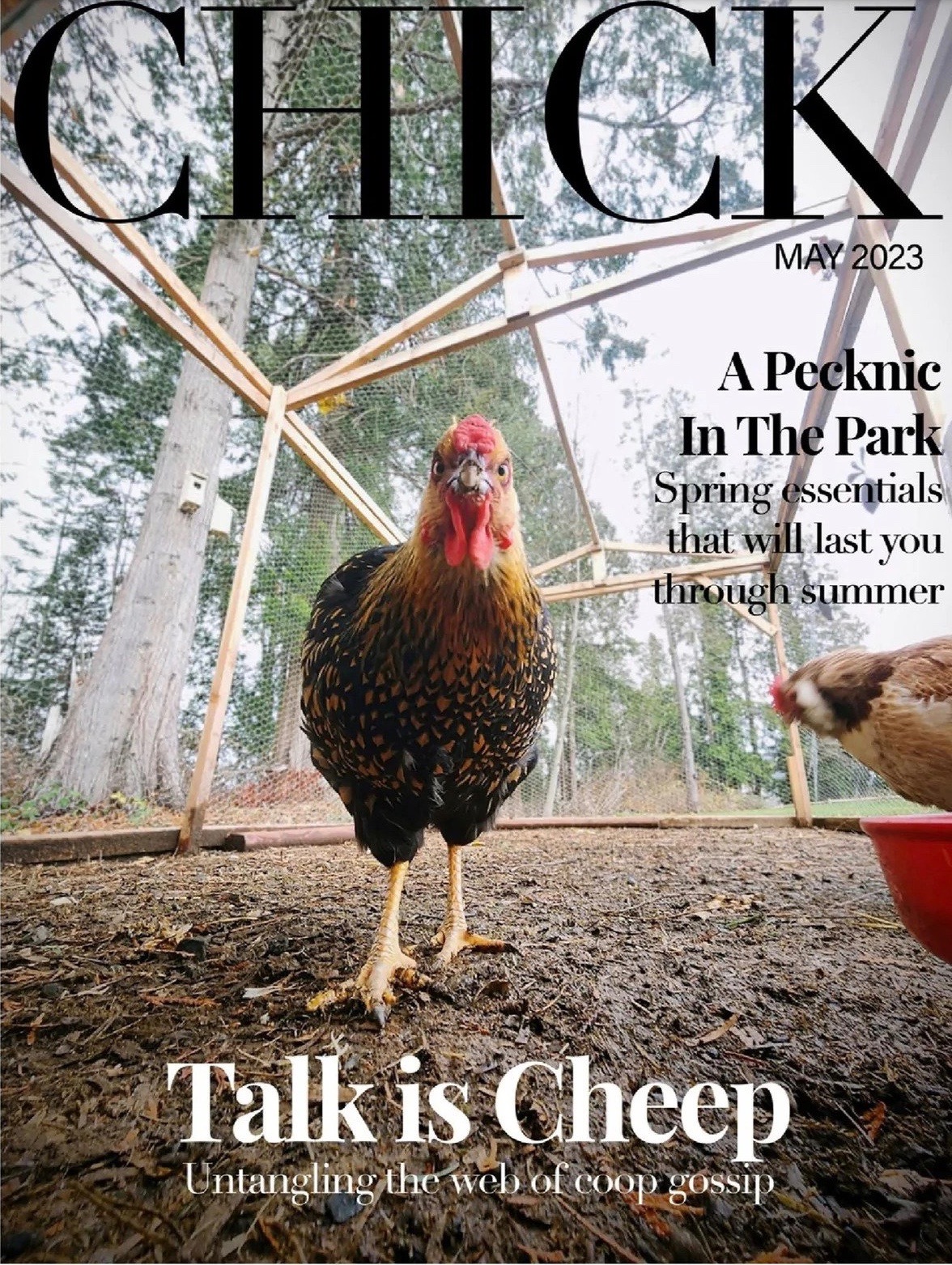 Thanks to everyone who shared their stories and helped brighten our day. Sorry, but Chick isn’t a real magazine, but art from a calendar by Sara Chapparo, a Seattle-based freelance graphic designer, artist/crafter and animal lover who plans to have a farm sanctuary one day.