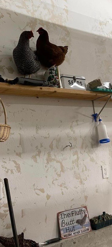 When you get chickens people don’t warn you how catlike they can be, getting up high in places they don’t belong and knocking stuff off shelves so it breaks. And I was so worried when I couldn’t find them at dusk earlier. Now I know why.