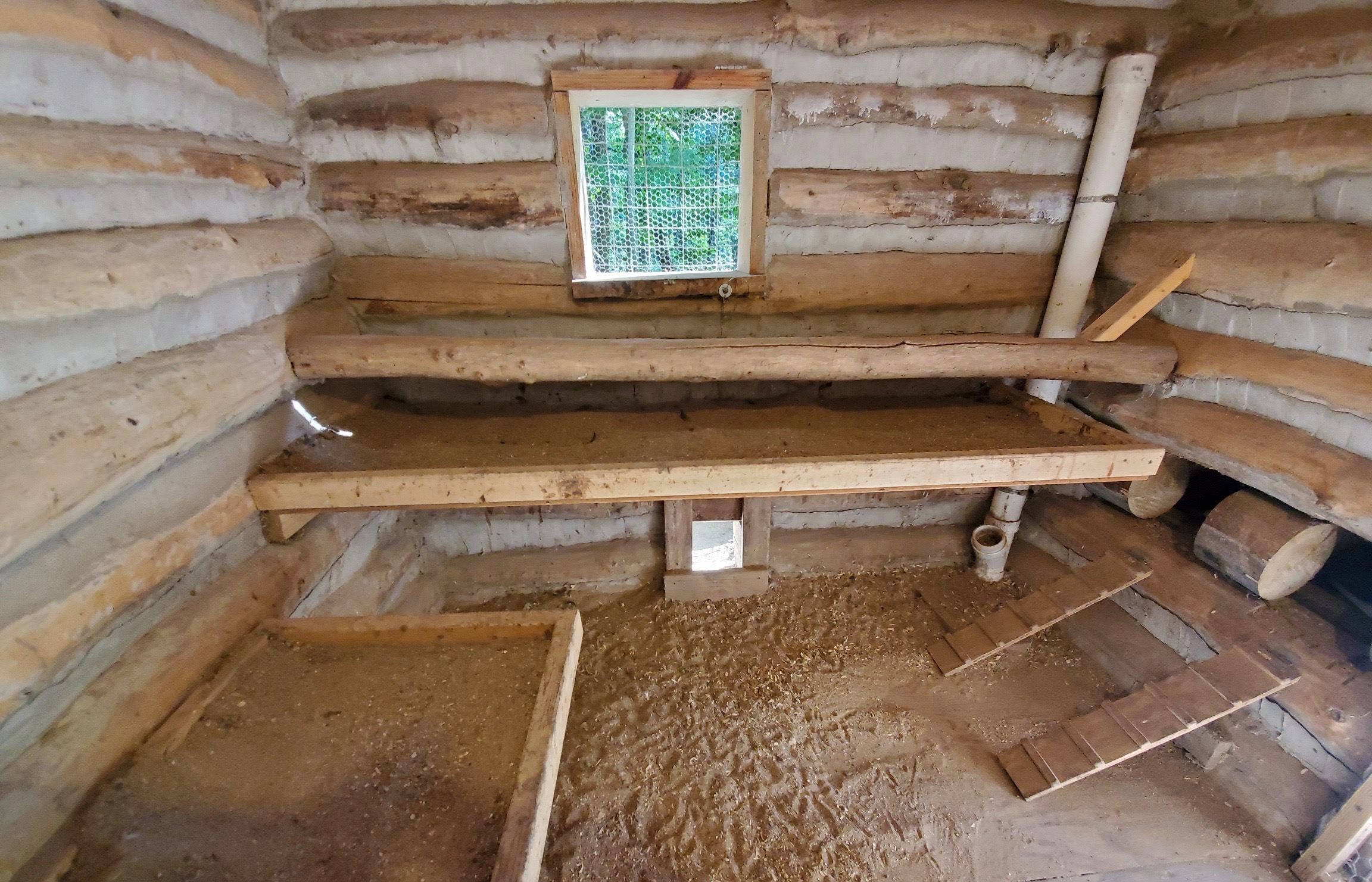 It was originally built by the family in 1994 as a playhouse for their daughter using poplar logs cleared when they built their house. Twenty-five years later, Keith spent two months repurposing it into a cosy chicken compound in the woods.