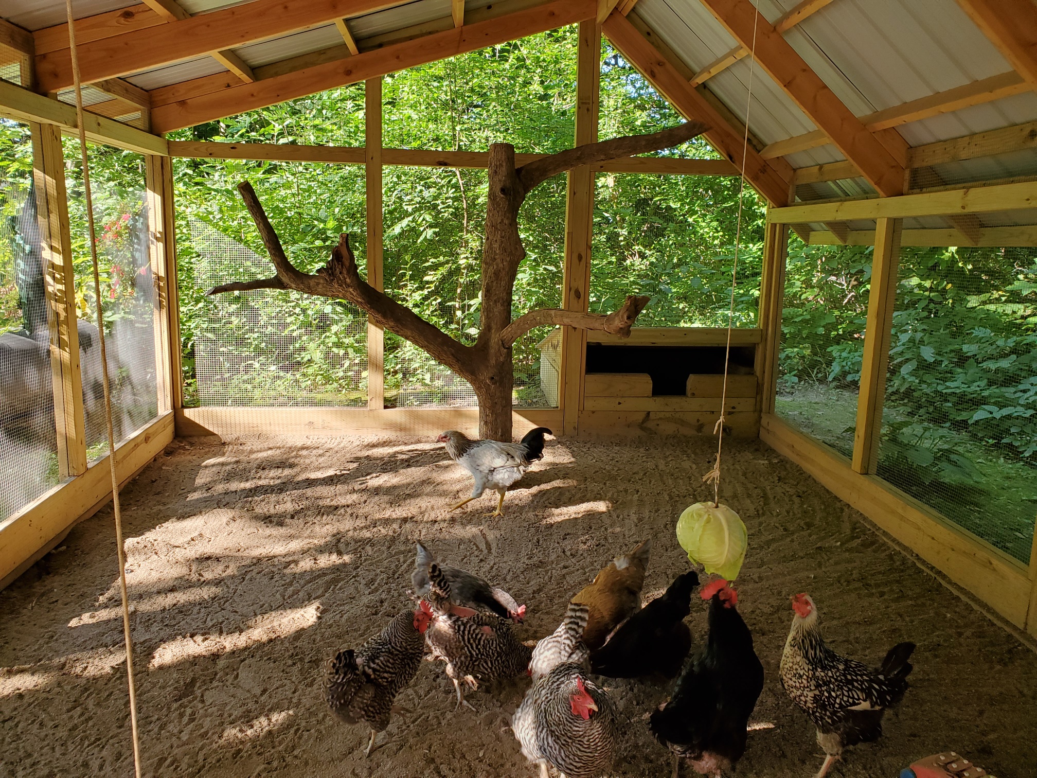 They added a 12’ x 25’ run which was later totally enclosed to form an indoor covered run that connects to an outdoor fenced ¼ acre for free ranging.