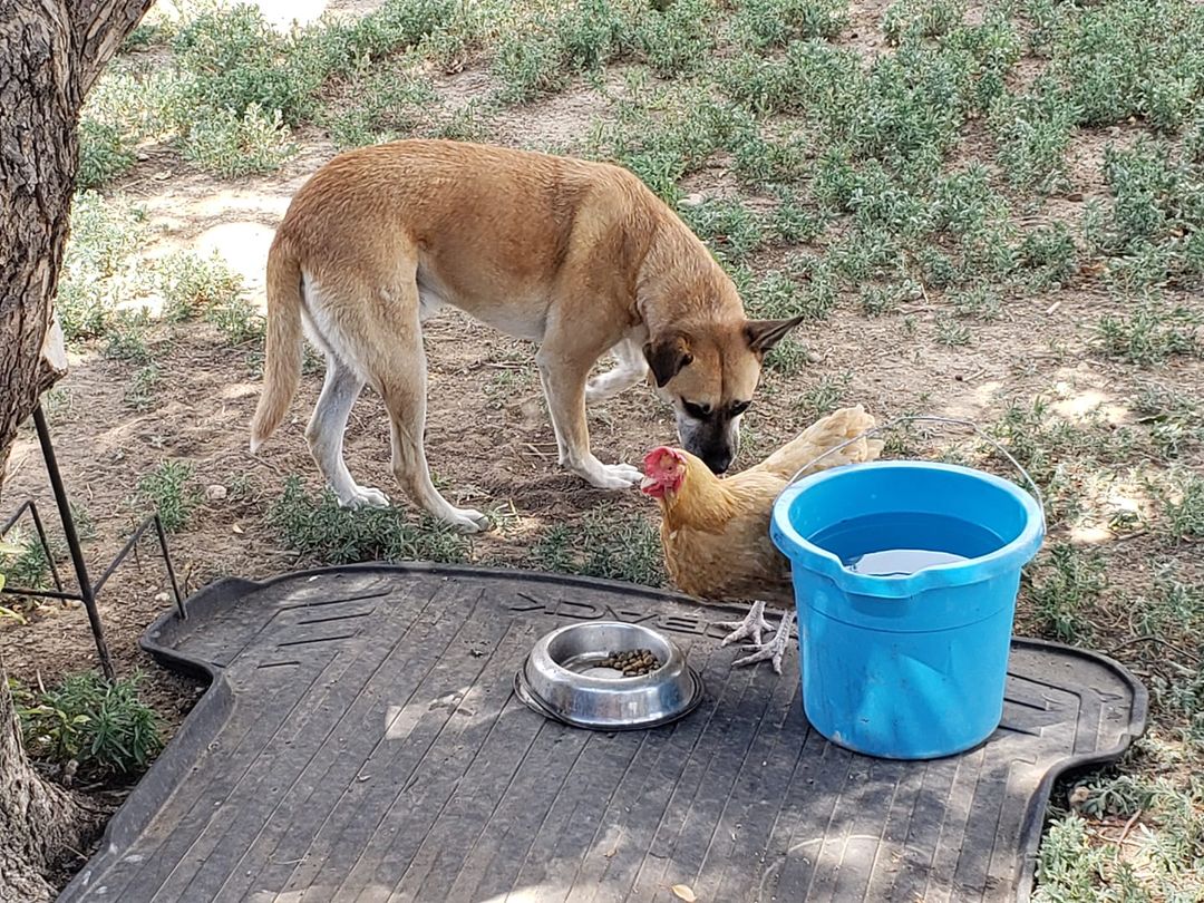Most stories featuring dogs and chickens don’t have happy endings. I’m glad when different species can co-exist without one of them becoming dinner or a injured in a game of ‘shake the chicken’. This week’s tales involve chickens that manage to outsmart the family dog and get the upper hand.