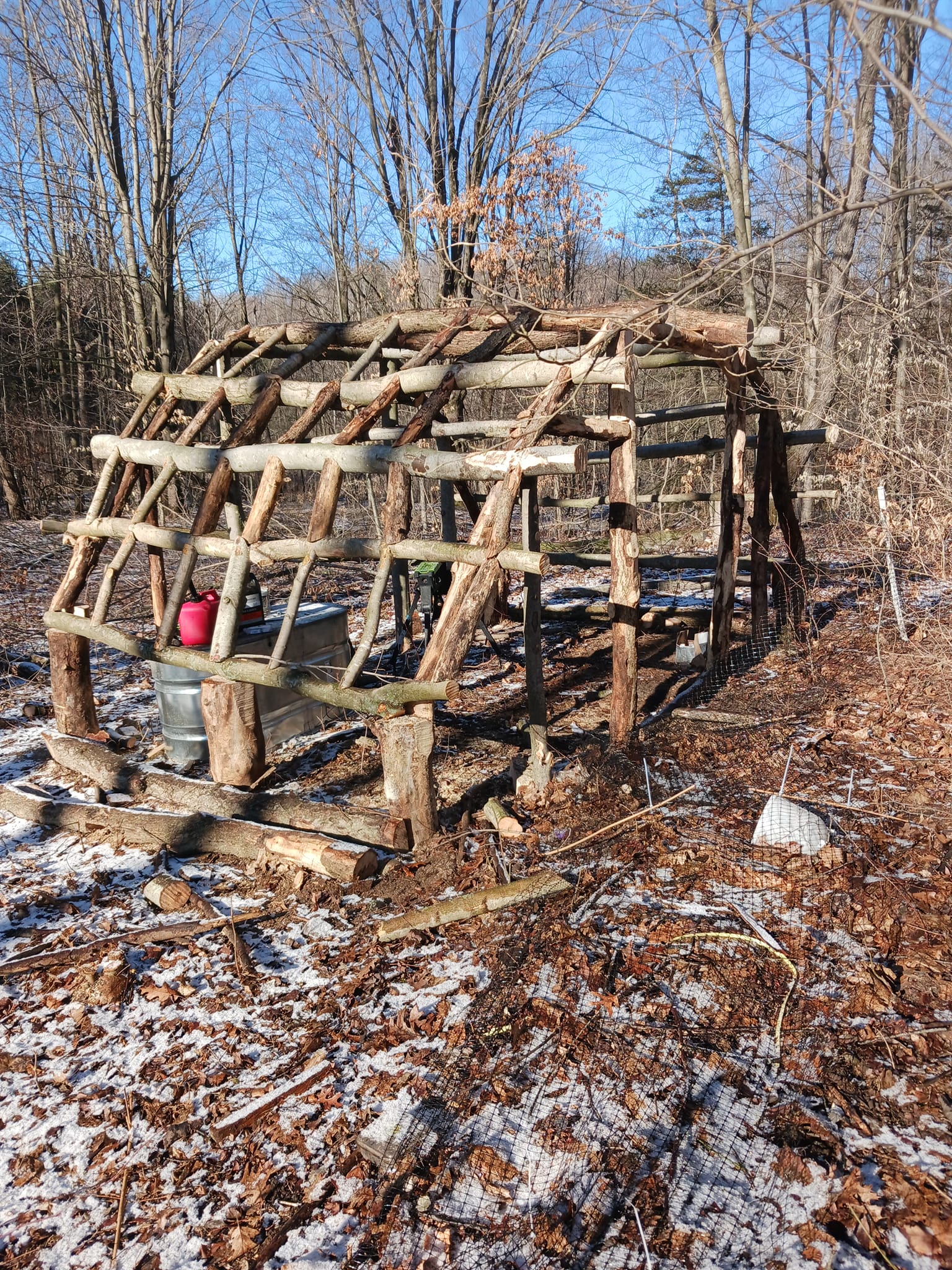 I have no heavy equipment and had to carry the logs manually so it was slow work, but I’m kind ripped now. It has consumed my life for the last six weeks. I’m still working on it and will probably always work on maintaining it. I’d guess I spent 200-300 hours for the initial build. Whenever I wasn’t at work as a tattoo artist, I was working on the coop.