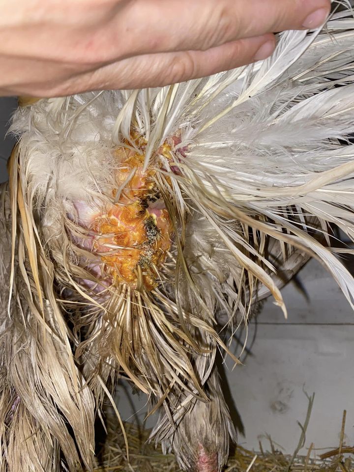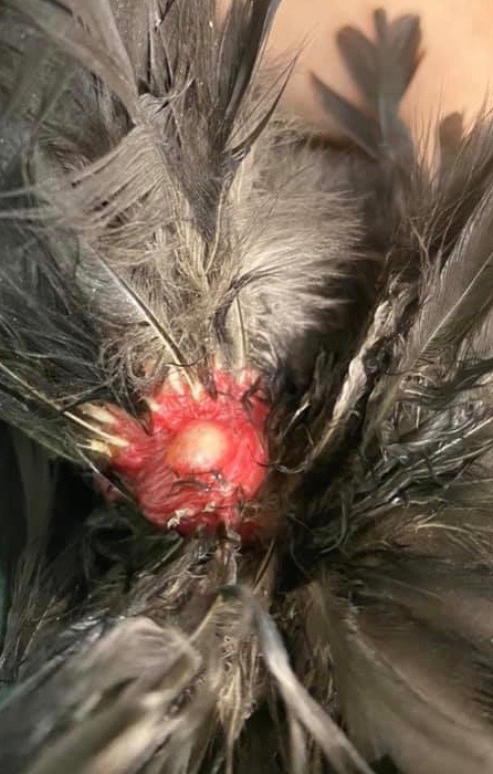 One of my eight-week-old chicks is developed this blister like thing on her back. Any suggestions on what I should do? – Dan Ladd