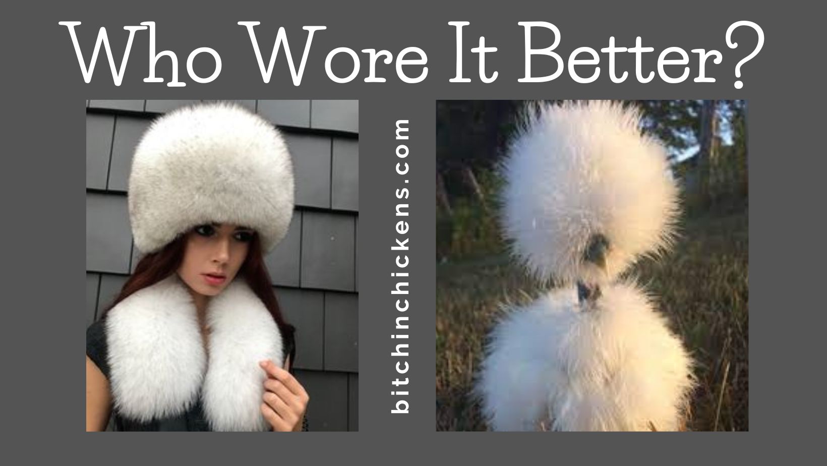 In retrospect, maybe some of these would have been better suited if they had been captioned ‘Separated At Birth’, but you get the idea. BTW: my previous rooster Simon and my frizzle hen, Dahlia, featured in a few of them.
