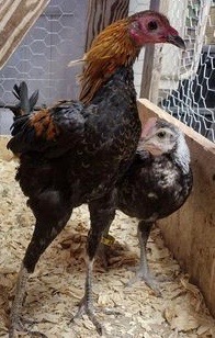 This is Castor, my bantam rooster that adopted 58 chicks as his own. He sits on them, shows them how to use waterers, and is very good at rounding everyone up for me every evening. He mothers them more than the hens. Castor also loves to make nests for the hens and sit on their eggs. Fifty-eight chicks and not a single one is his; he is more interested in raising them than making them.