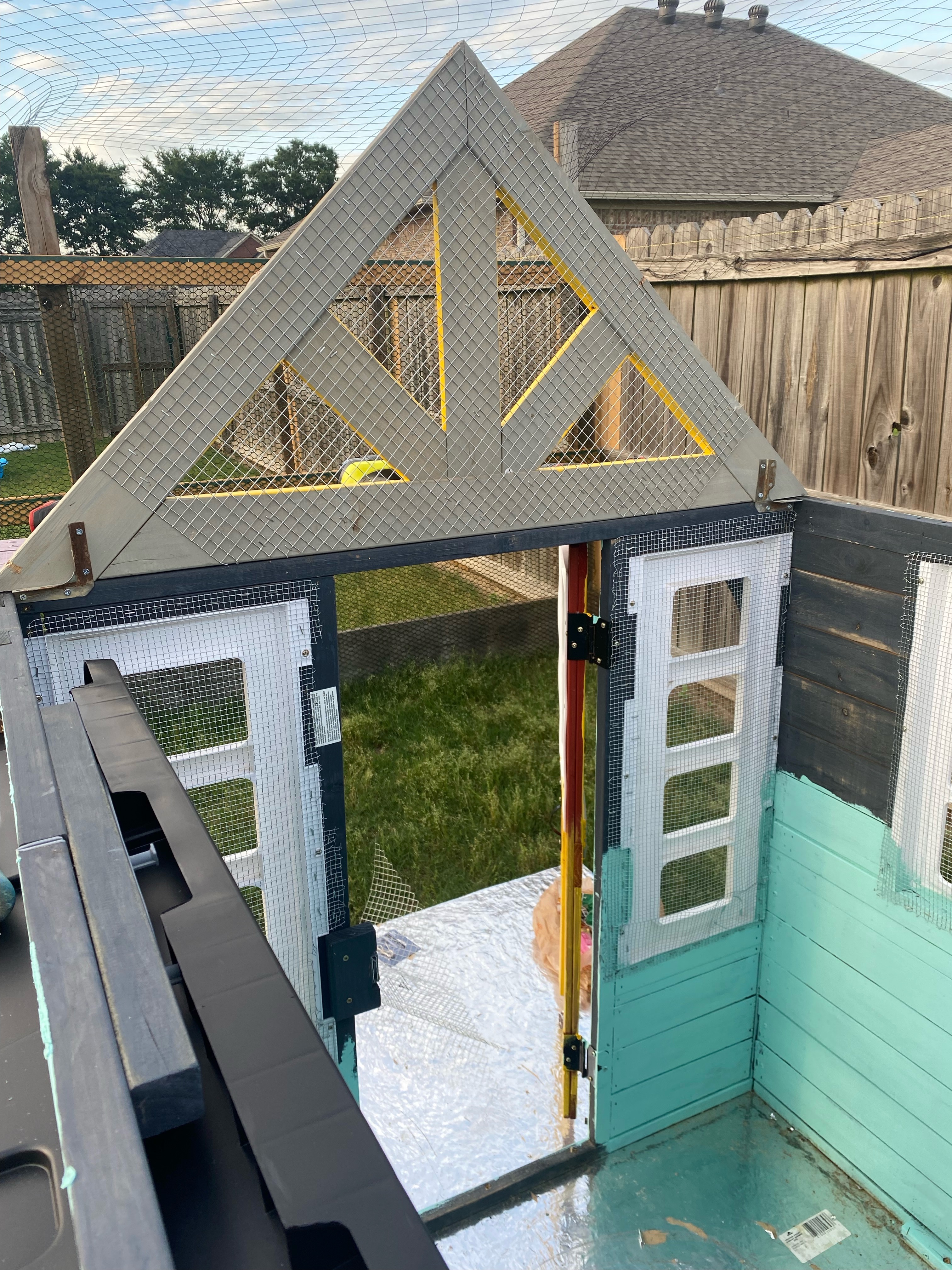 - The electric fence was pre-existing we just extended it to include the coop. We put two lines of electric fence on the outside of the coop and ran wire around the top of the fence for any critter that walks the fence.
