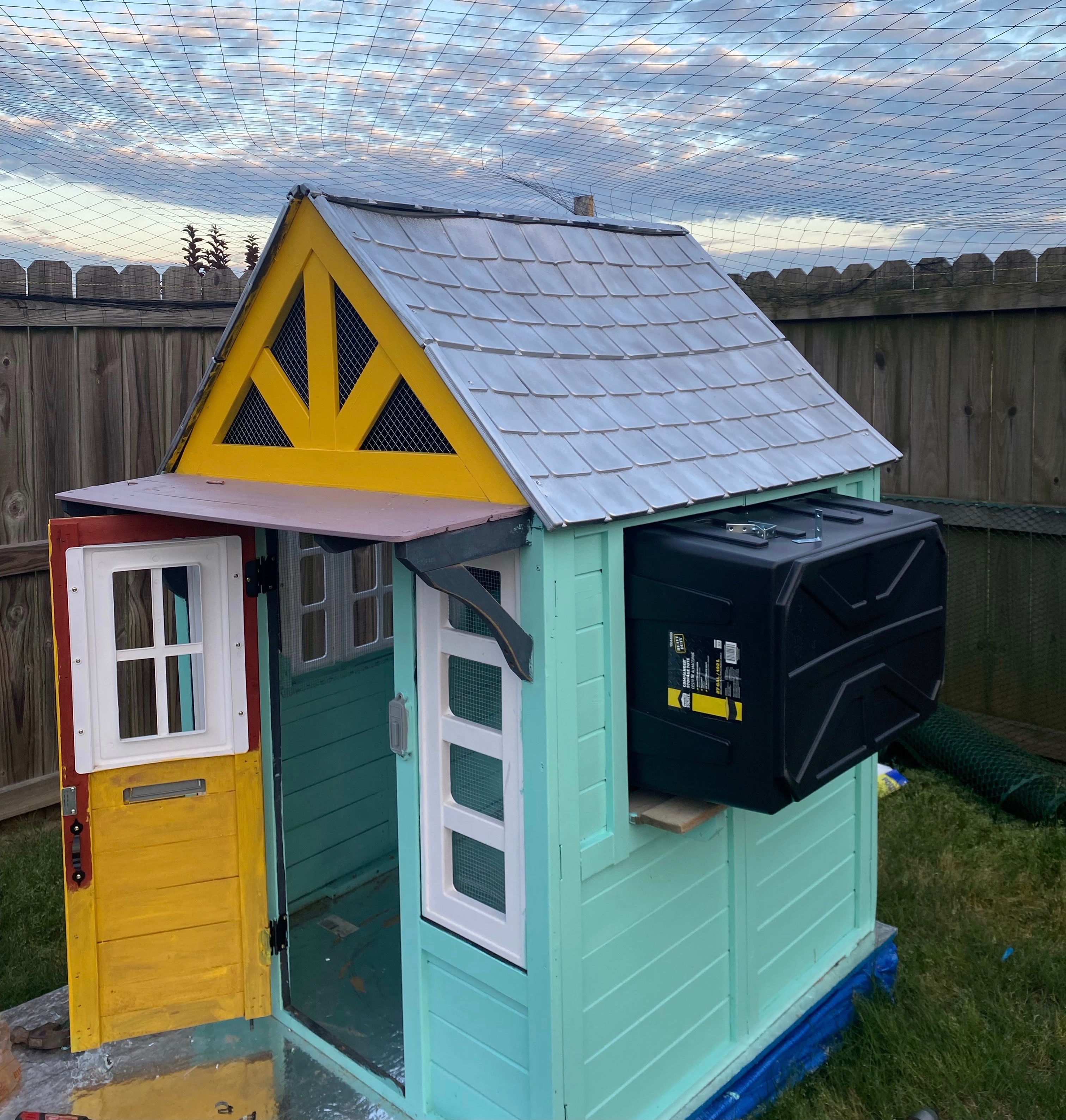 My husband, Bobby, and I worked on the coop together. The playhouse conversion was an idea I had and the rest just kind of fell into place. We’ve really just been coming up with ways to make it better as we go.