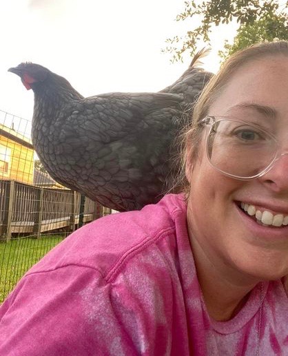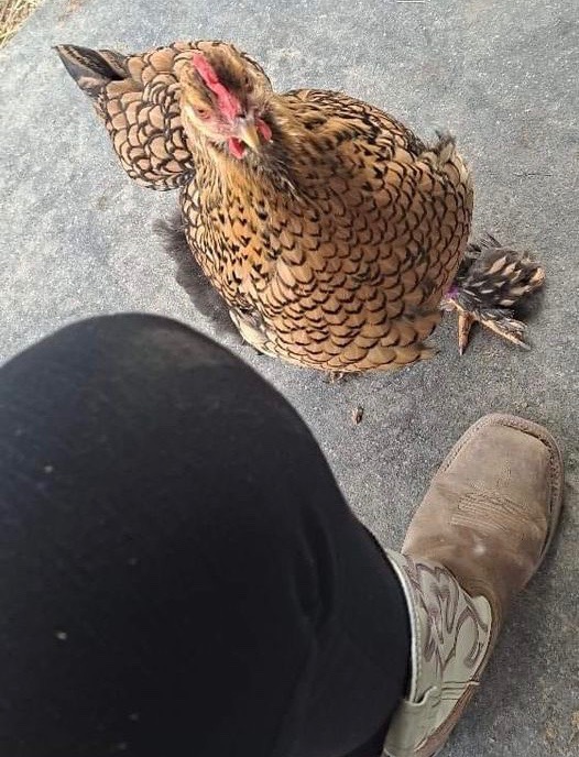 I had a special trusting moment with my head hen just now. I heard the girls alerting me and looked outside to see a large red-shouldered hawk watching over my flock and doing its call. Everyone was in the coop except for my head hen, Jojo, who was attacked by a hawk last March.  She was all the way across the yard by herself, panicking and too scared to run to the coop. I shut everyone in the coop and walked towards her, calling for her. She was still too scared to move even with me standing there. I stood directly next to her until she was confident enough to start making her way towards the coop. Eventually every step I made, she made. We walked side by side all the way back and when she finally made it to the coop, I opened the door for her and she looked back at me, right in the eyes, like she was saying “Thanks mom. I got it from here”. I love that they trust me enough to let me guide them and get them to safety. They know momma will do anything to keep them safe. Little moments like these are quite special to me!