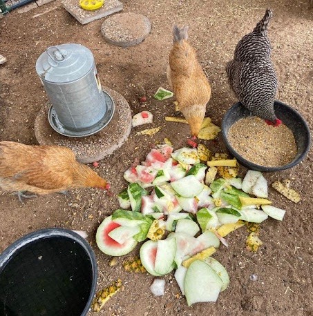 - The hens eat the greenery growing along the chunnel and keep bugs off the foliage