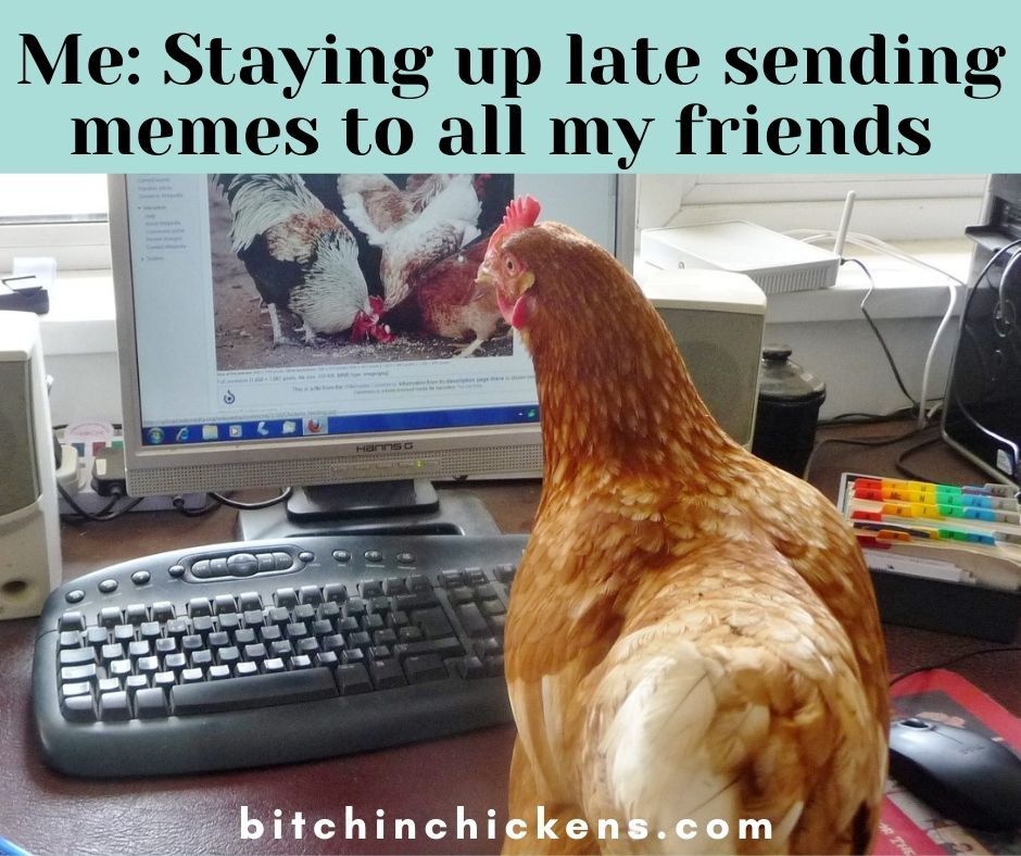 I went through my archive and found a number of ‘me’ memes. You can tell some of these are oldies because I used a smaller format and different font. I prefer the larger size and lighter font, but working on anything about chickens is always fun. Enjoy!