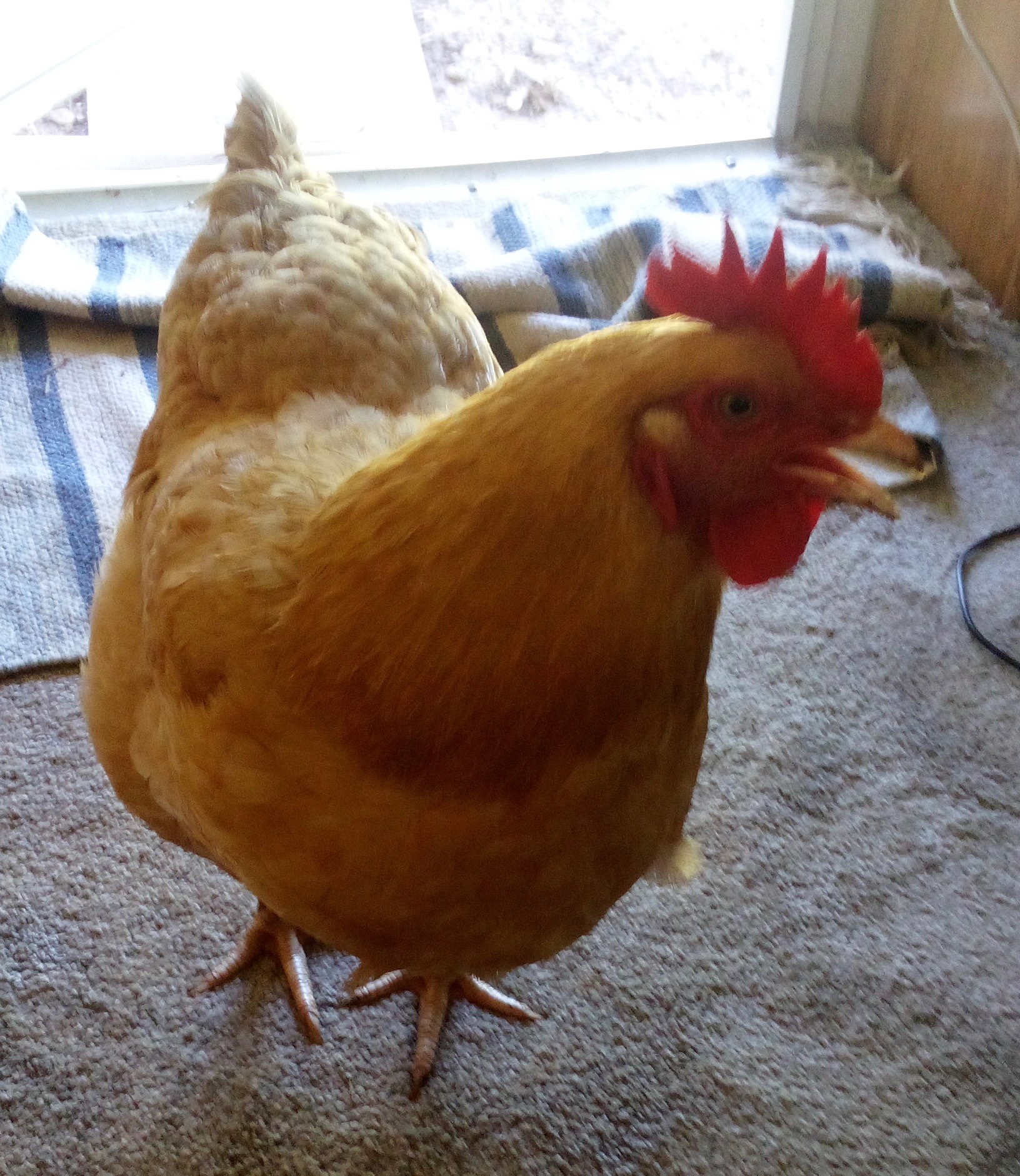 Once upon a time, in a quaint little farm nestled in the countryside, there lived a mischievous and adventurous Buff Orpington hen named Buffy. She was no ordinary chicken; Buffy had a personality that was larger than life and a penchant for getting into all sorts of trouble. She had a unique belief that she was not just a chicken but a human trapped in a feathery body. Buffy’s escapades were legendary among the farm animals and human residents. She would often wander off on her own, exploring every nook and cranny of the farm, much to the dismay of her owner, Tara.