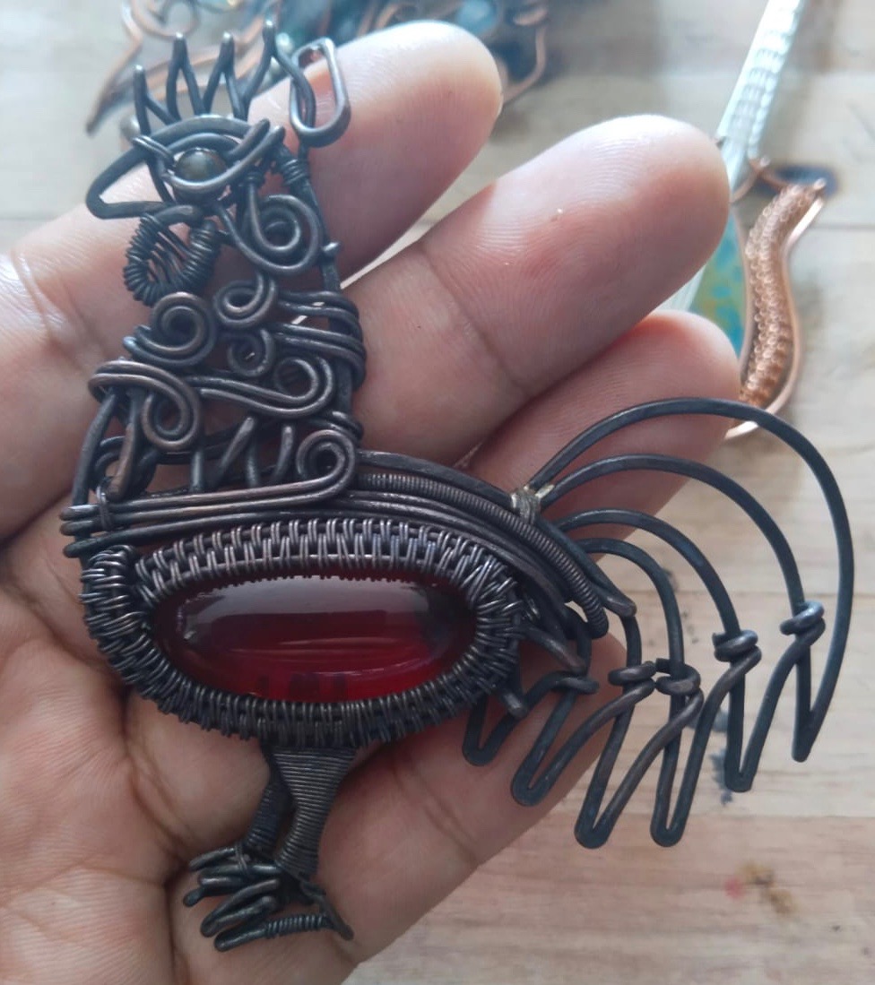 I’m a self taught artist from West Java, Indonesia. I’m an animal lover and inspired to replicate animals in my work: carved wood, bone and shell, as well as wire coil and semiprecious stones like agate and labradorite.