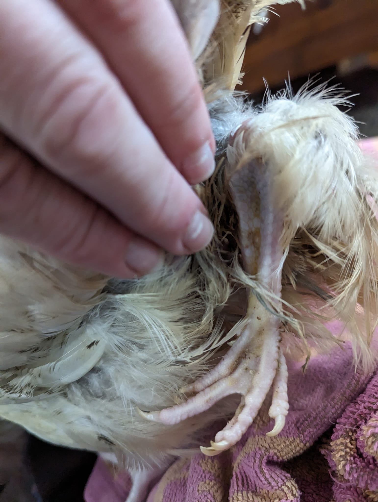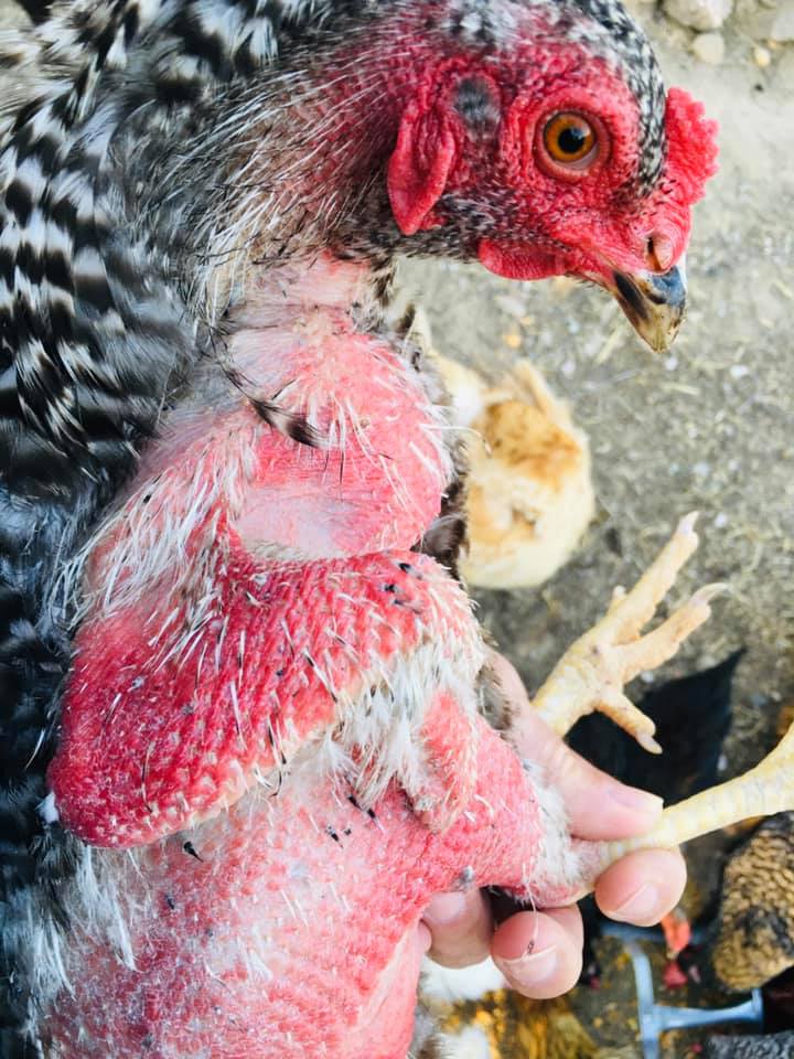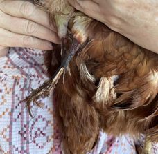 Bitchin’ Chickens: Just after Dr Bowes and I looked at this case the owner took her hen to a vet who thought the condition involved abnormal feather growth. By then the skin structures had fallen off of their own accord. She was treated with Betadine and monitored for flystrike.