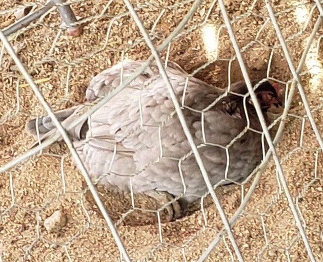 My Indy, my silver Easter Egger! Oh, dear, suddenly dead by the feeder. And then, this brat gets up, shakes off her chicken ass, and walks off like she didn’t just cause me partial heart failure.