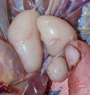 Dr Bowes: Although that’s what it looks like, I think that that one of the testicles had been constricted during development giving it an odd shape.