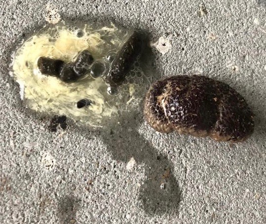 My two-year-old Buff Orpington hasn’t laid in months. She still goes to the nest almost every day but lays nothing. Today, she pooped, then closed her eyes and started having contractions. Eventually this other thing came out. It appears to be an old egg, not a lash egg. It’s hollow, has a membrane like an egg does. No smell. – Aimee Lawson