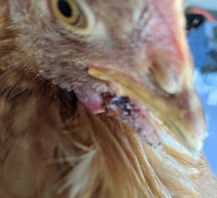 When I first showed Dr Bowes this chicken photo (credit: Jeni Barker) she had no idea what she was looking at. The scientific term is conical hyperkeratosis cutaneous horn, which is a mouthful meaning a lesion consisting of keratic material above the skin that resembles an animal horn.