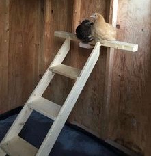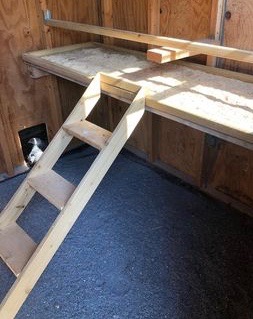 - Roosting bar with a droppings board underneath, next to a window, with a ladder to get up and down