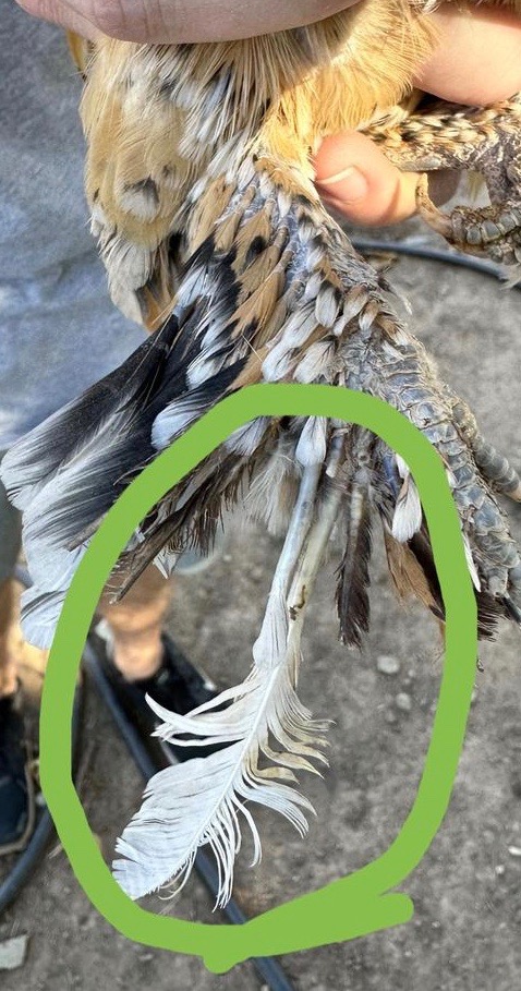 I have a feather-footed bantam hen that has been limping for the last week. The only issue I can see is this long white feather that might be hurting her because of its length it sometimes folds back and she steps on it. It looks vascular so I’m not sure about trimming it, but I want to do what I can to help her. – Dylan Richards