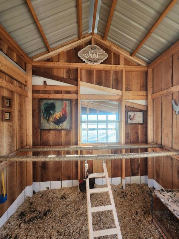 Carolina Coops videos are my favorite place to look for inspiration and advice. Matt DuBoise is amazing! He had a huge impact on our build, as well as our choice of deep litter hemp bedding, rope roost bars and how to do a predator-proof enclosed run. I feel like he’s become a part of the family.