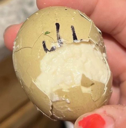 I found this image in an online chicken group. The poster had found this freshly laid egg which appeared to be ‘cooked’. Another group member posted her explanation as: “Coagulation caused by coagulase producing bacteria; basically it’s a chemical reaction that causes chemical “cooking”.