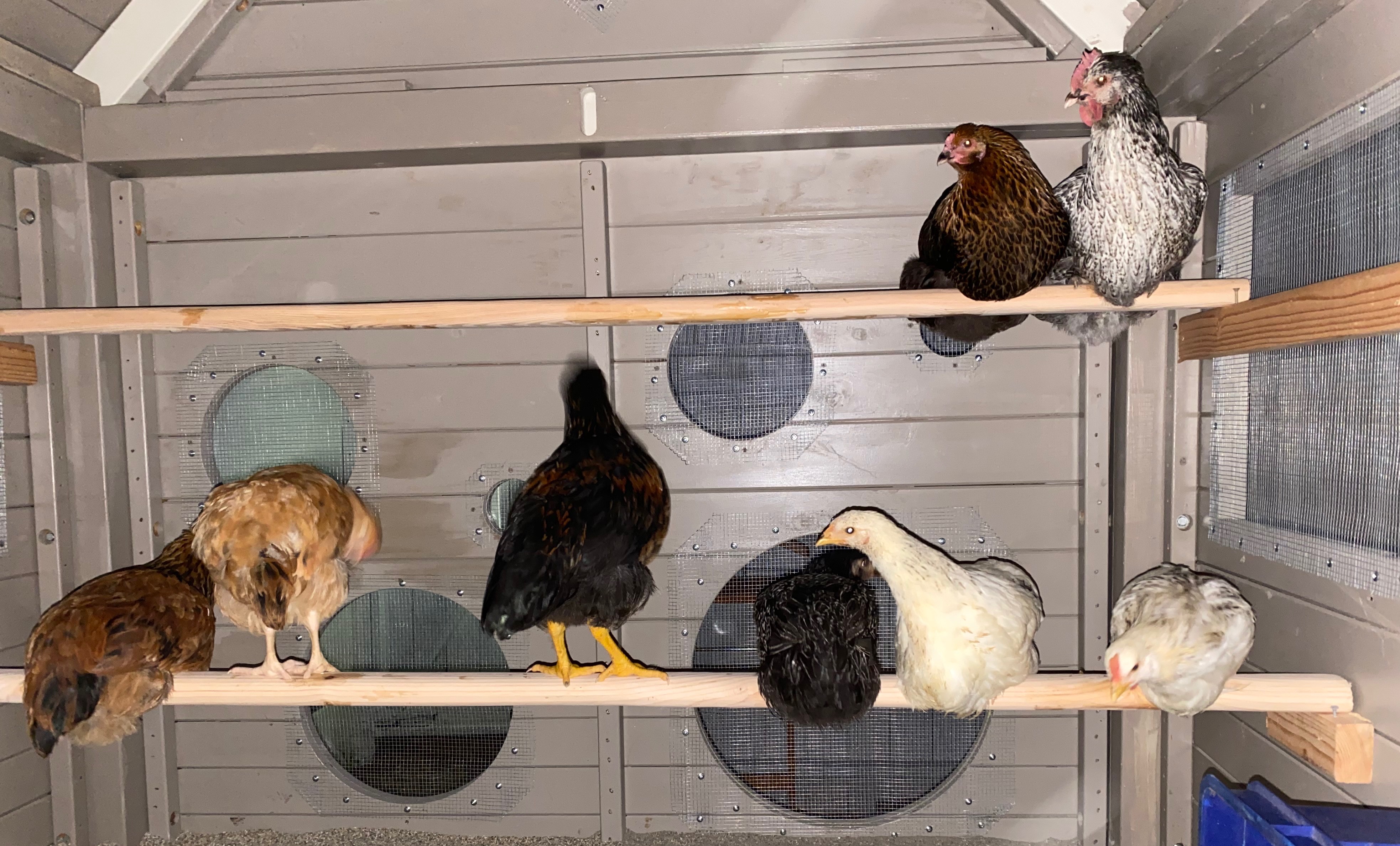We have six ladies now, as four of the pullets turned out to be cockerels. Two are 18-month-old Silver Laced Wyandottes and the rest are from my friend’s mixed flock, 3 and 8 months old. Her current rooster, Sweet Sugar, is the father to all the babies, so we expect great temperaments and so far they are super tame. We went with a variety of mixes to get a range of coloured eggs. I’m so excited about coloured eggs!  She will replace the four roosters with hens in the spring. We can comfortably house 12 birds. I want to stagger their ages so we have steady eggs once they all start producing.
