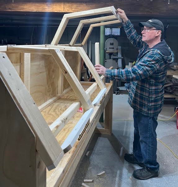 Then in February of 2023, on a very windy day, a large pine tree fell directly on our chicken coop. It unfortunately killed three of our hens and destroyed their home. While it was still quite cold and snowing, we quickly built a new chicken coop that was a bit bigger and allowed us to install a better water system. Now that my dad is retired and I can help as much as I can on the weekends, our next project after this brooder we just built will be building another new coop specifically for these Silkies.