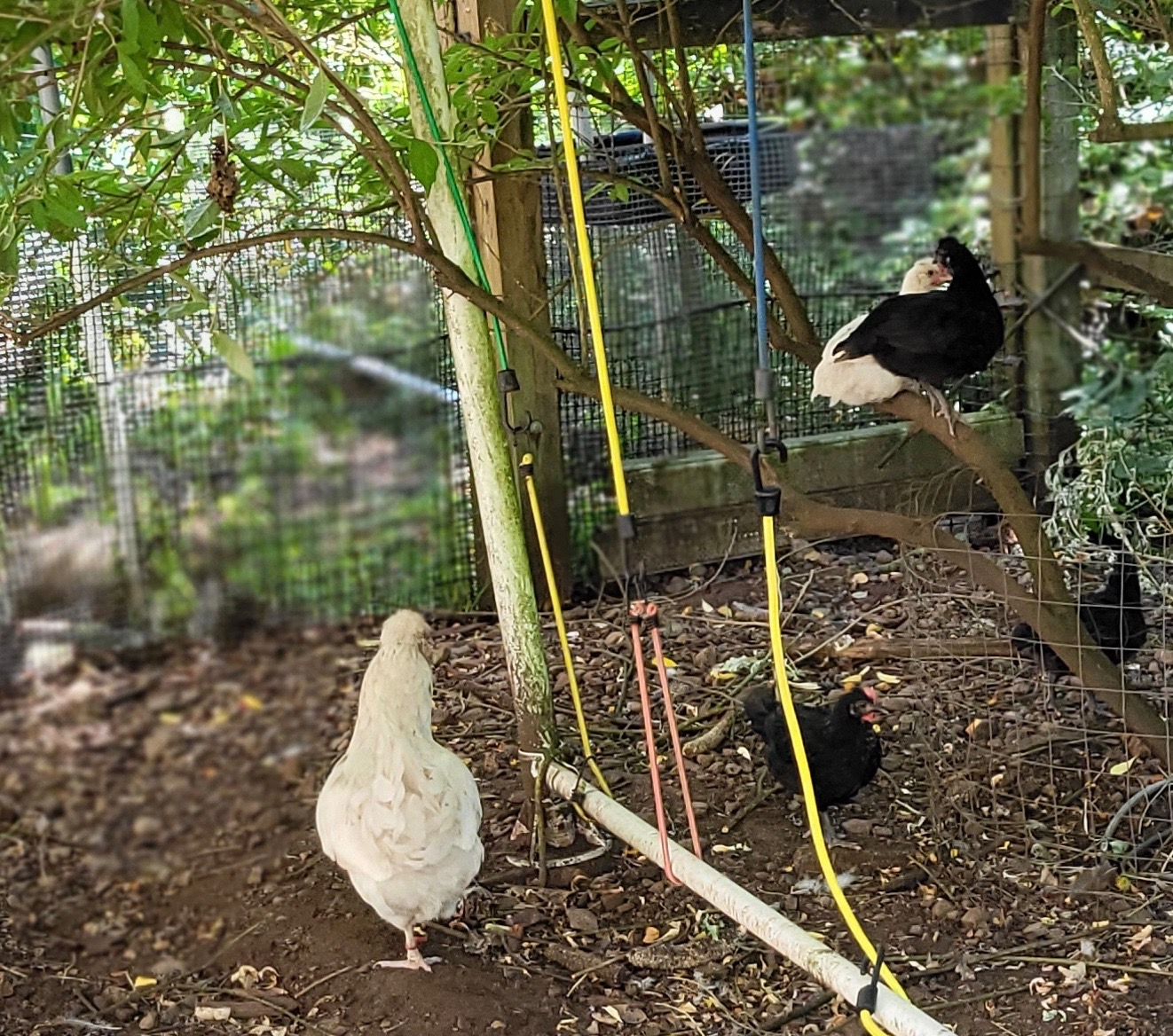I rehomed their dad two weeks ago, in part to get new genetics into my flock as well as to give my hens a break. He’s big for my girls and his mating behaviour has contributed to some substantial feather loss for my frizzles. I tried saddles to protect them and they reacted as though I was trying to kill them.