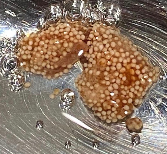 My 4-year-old hen had a broken egg hanging out of her this morning. I soaked her and very carefully got all the pieces of shell out that I could see and this is what’s left. Are those spots tumors? Or do they look like salpingitis (lash egg) infection was starting?