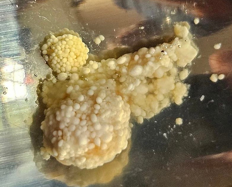Dr Bowes: The yellow spots are caseous exudate. Continue to treat this as a vent prolapse in the same way you’re already doing.