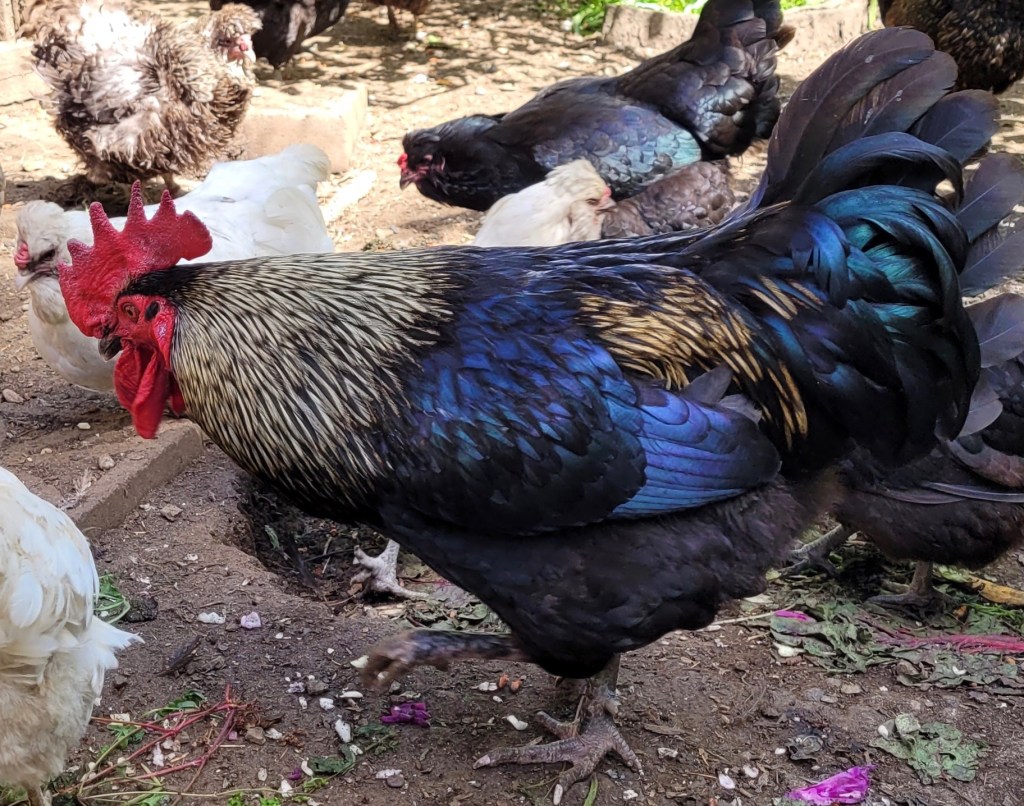 I’ll start out by saying that the tendency for hens to go broody is genetic and my flock clearly carries that maternal DNA. Some breeds like Silkies, Orpingtons and bantams are overrepresented in that department, but most of my girls are descended from Polish, Appenzeller Spitzhaubens and Ameraucanas. My rooster Hank is a first generation (F1) Olive Egger: Isbar (pronounced Ice-bar, also known as Silverudd Blå) crossed with Black Copper Marans. My last rooster was a smooth feathered Silkie-Easter Egger cross whose only obvious Silkie traits are his walnut comb, five toes and his ability to throw the odd melanistic (black skinned) or blue eared offspring. Some of my hens are his daughters so perhaps he contributed some broody genes in a flock already rife with them.